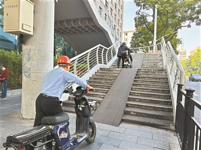 17時30分,工作人員準(zhǔn)時出現(xiàn)在天河?xùn)|路獵德大道路口,對即將駛?cè)虢新范蔚尿T行人員進(jìn)行勸阻。在獵德大道限行路段沿線一小區(qū)門口,市民王女士剛騎車將孩子從學(xué)校接回來?!跋扌幸?guī)定給接送孩子造成了一些不便?!彼f,現(xiàn)在回小區(qū)需要繞行很大一段路,而且需要推著電動自行車過天橋?!斑@對我來說是很吃力的事情。”