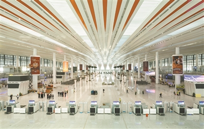 站房內(nèi)外花瓣為異型多曲結(jié)構(gòu)造型,彎、折、曲、扭是其最大特點,最大懸挑跨度28米、最大折角接近90度,給站房裝飾裝修施工帶來極大挑戰(zhàn)。建設(shè)團隊廣泛應(yīng)用數(shù)字輔助建造技術(shù),全面提升不同建材交叉邊界的精度控制,為工廠定型化加工和現(xiàn)場安裝提供技術(shù)支持,使花瓣曲面造型得以完美呈現(xiàn)。