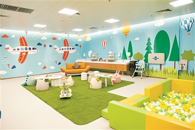 新指廊建筑最高點高度34.3米,候機區(qū)超高的挑高,加上超大落地玻璃,顯得十分寬敞明亮。樓內(nèi)配置全新標(biāo)識標(biāo)牌,休息等候區(qū)內(nèi)配置了吧臺式桌椅、超3000張可充電座椅、14臺智能旅客指引PISS機、童趣氛圍十足的母嬰休息室,甚至還有專用的輪椅和導(dǎo)盲犬休息室……設(shè)施與裝潢相得益彰,整體指廊流程簡捷、導(dǎo)向清晰、空間舒適、設(shè)施豐富、體驗多樣,為旅客帶來愉悅的出行體驗。