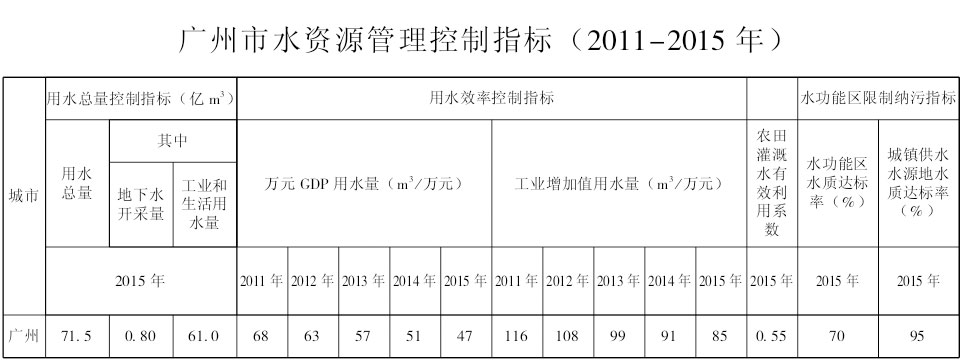 附件:1廣州市水資源管理控制指標(biāo)(2011-2015年)