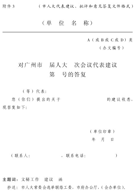 第八條 上級(jí)機(jī)關(guān)交由市政府辦理的全國(guó)、廣東省人大代表建議以及全國(guó)、廣東省政協(xié)提案,由市府辦公廳代表市政府接辦后于7日內(nèi)分送相關(guān)單位承辦。