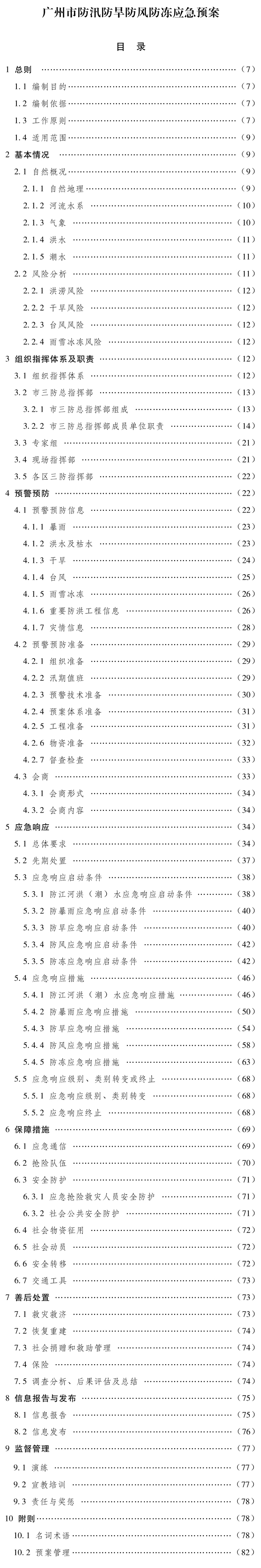 (4)本預(yù)案自印發(fā)之日起實(shí)施。2012年頒布的《廣州市防汛防旱防風(fēng)防凍應(yīng)急預(yù)案》自即日起廢止。