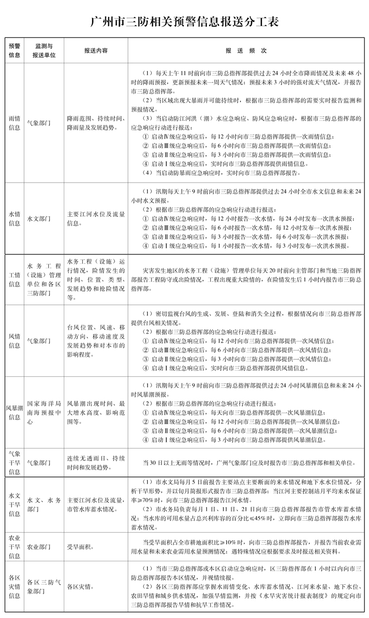 2.廣州市三防相關(guān)預(yù)警信息報(bào)送分工表