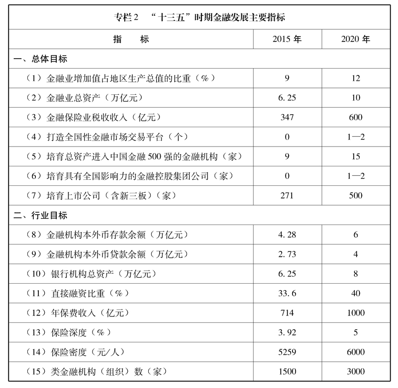(四)其他金融業(yè)。到2020年,各類類金融機(jī)構(gòu)和組織達(dá)3000家以上,與銀行、證券、保險(xiǎn)等共同構(gòu)成高度發(fā)達(dá)的金融組織和市場(chǎng)體系。