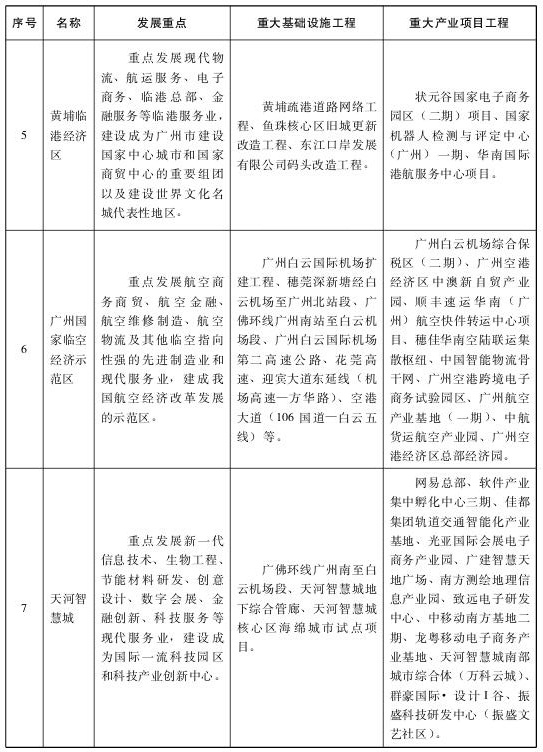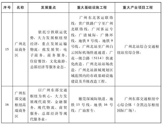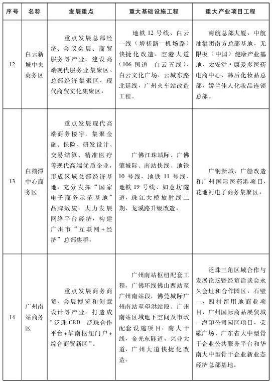(一)強化廣州國際綜合交通樞紐功能。加快推進廣州第二機場、白云國際機場擴建工程、白云國際機場第二高速公路工程、廣州港深水航道拓寬工程、廣州港南沙港區(qū)四期工程、南沙國際郵輪碼頭工程等一批重點工程規(guī)劃建設。推動港區(qū)功能調整和海港泊位結構優(yōu)化。強化與泛珠腹地城市合作,共建一批無水港,大力拓展內陸市場。積極爭取航權航線開放,鼓勵基地公司發(fā)展北美洲、歐洲、大洋洲、非洲等中遠程國際航線。力爭“十三五”期間白云國際機場新開通30條全貨運航線,廣州港新增30條國際班輪航線,進一步提升航空樞紐和航運樞紐的航線網絡覆蓋面和通達性。拓展廣州鐵路貨運樞紐國際服務功能,加快建設中歐班列的廣州始發(fā)基地,積極向國家爭取設立鐵路一類口岸。按照“客在內、貨在外”的思路,結合產業(yè)集聚區(qū)規(guī)劃,整合中心城區(qū)既有鐵路貨運站,推動鐵路貨運站場及物流園區(qū)向外圍城區(qū)布局,完成中心城區(qū)內大中型貨運場站外遷。推進廣州集裝箱中心站、南沙萬頃沙物流中心、增城鐵路貨站建設,大力構建輻射華東、華中與西南、珠三角地區(qū)集裝箱中轉、聯(lián)運、區(qū)域性物流配送的全國性鐵路貨運樞紐,與南沙海港實現聯(lián)動發(fā)展。策劃一批關鍵通道、關鍵節(jié)點和重點工程,加強與周邊國家和地區(qū)的跨境物流體系和走廊建設。