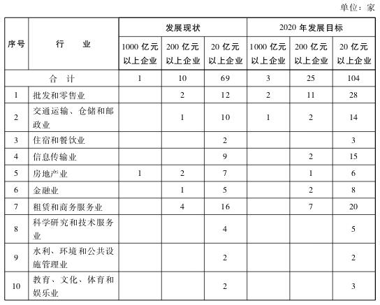 到2020年,服務經濟發(fā)展規(guī)模穩(wěn)步提升,產業(yè)結構和區(qū)域布局更加優(yōu)化,現代物流、金融、商貿會展、信息、科技、文化創(chuàng)意等高端服務業(yè)占比大幅提高;具有全球影響力的國際航運樞紐、國際航空樞紐、國際科技創(chuàng)新樞紐建設取得重大進展,國際航運中心、國際物流中心、國際貿易中心、現代金融服務體系和國家創(chuàng)新中心城市功能框架與標志初步形成;國家中心城市資源配置能力和集聚輻射能力顯著增強。