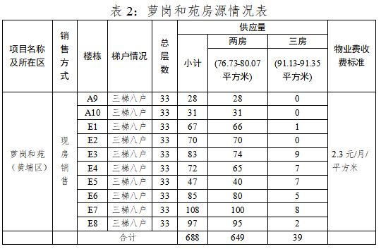 蘿崗和苑配售型保障性住房項(xiàng)目位于廣州市黃埔區(qū)水西路以西,由廣州安居集團(tuán)所屬?gòu)V州城投住房租賃發(fā)展投資有限公司(下稱城投住房租賃公司)進(jìn)行銷售,本次供應(yīng)房源688套,房屋戶型、套數(shù)等情況詳見(jiàn)下表: